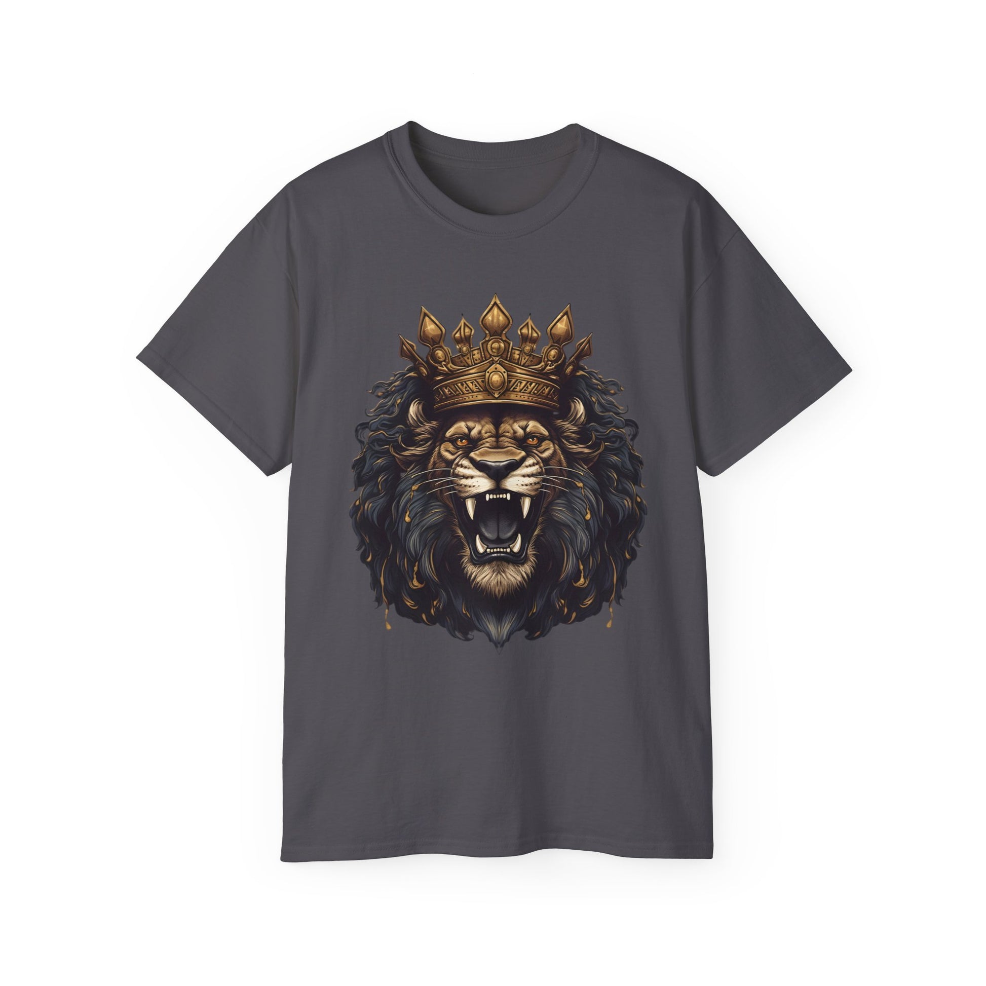 Regal Lion King T-Shirt - Majestic Roaring Lion with Crown Graphic Tee - Unisex, Bold Animal Print Shirt